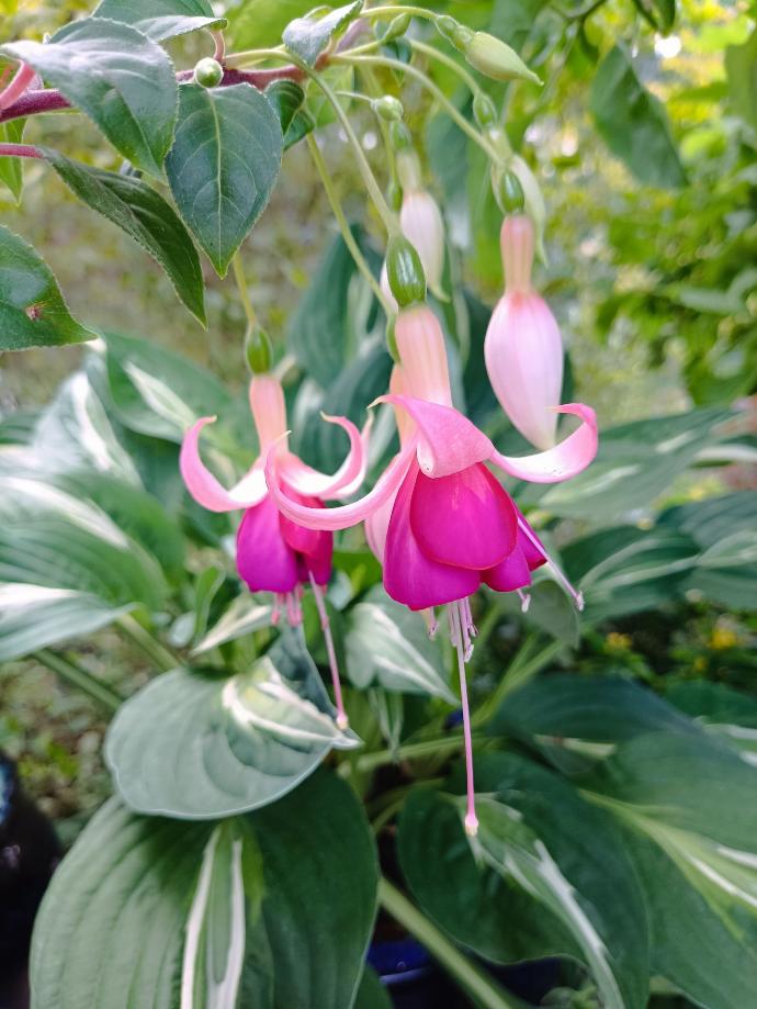 'Fischers' ist eine überhängend wachsende Fuchsie mit großen halbgefüllten Blüten. Die Blätter sind kräftig grün und leicht samtig.