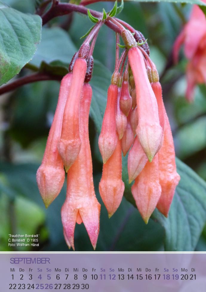 Diese Fuchsie entstand bereits 1905 aus F. triphylla x F. fulgens bei Carl Bonstedt in Göttingen. Sie wächst aufrecht und blüht mit einfachen Blüten in dichten Trauben überreich und verträgt sonnige Standorte. Das Laub ist dunkelgrün und unterseits rötlich. Ich habe diese Triphyllasorte schon über 25 Jahre und habe auch keine Probleme mit der Kultur. Als ältere Pflanzen überwintern sie bei mir auch trockener gehalten im kühlen Gewächshaus.