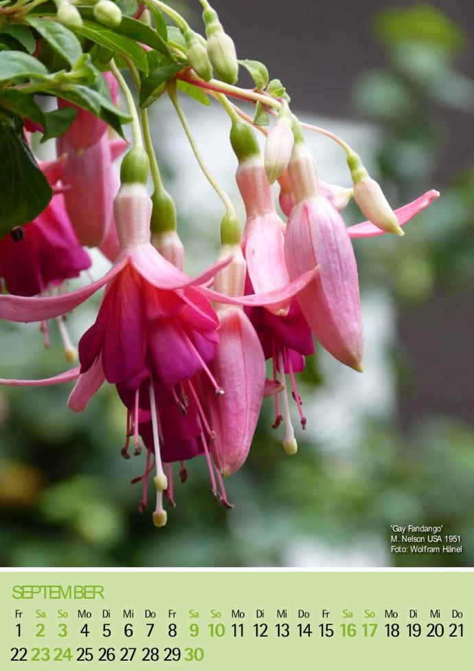 Diese schon über 70 Jahre alte Sorte aus den USA ist sehr reichblühend. Sie ist starkwachsend und wächst locker aufrecht bis überhängend und verzweigt sich gut. Die Sepalen sind dunkelrosa und die gefüllte Korolle purpurrosa mit orange.
