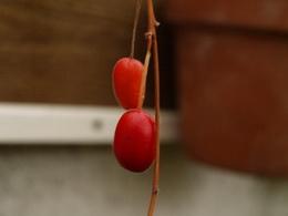 Wir gehen nun die Arten alphabetisch durch und beginnen mit F. apetala. Dieser Namen zeigt eine Eigenschaft, die der ganzen Sektion eigen ist, nämlich, dass die Blüten keine Kronblätter (apetala = ohne Petalen, he) haben. F. apetala war die erste Art, die ohne Petalen gefunden wurde und erhielt daher diesen Namen. Hipólito Ruiz und José Pavón fanden diese Art 1779 und publizierten sie 1802. Es ist ein niedriger, beinahe kriechender Strauch auf moos- und humusreichem Boden, wächst aber auch epiphytisch auf feuchten Baumstämmen. Die Knollen sind 5 x 8 cm gross, also etwa Kartoffelgrösse. Die Blätter sind bis 5 cm lang und stehen wechselständig. Die Blüten von etwa 3.5 cm Länge sind hellrot bis hellorange und bilden kleine Büschel. Diese Fuchsie hat bei mir im letzten Jahr (2012, he) den ganzen Sommer durch geblüht. Mit jedem neuen Blattpaar erschienen in den Blattachseln auch wieder Blüten. Die Büschel sind im Winter etwas grösser. Die Beeren sind erst grün, werden mit der Reifung gelb und schliesslich hellrot.