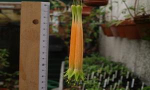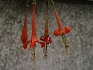 Wir beginnen mit Fuchsia huanucoensis. Diese Art wurde nur an zwei Plätzen in Zentral-Peru gefunden. Sie wächst in Nebelwäldern in Höhen zwischen 2'750 und 2'950 m. Paul Berry benannte sie nach der peruanischen Provinz Huánunco, in welcher die Fundorte liegen. Sie bilden kleine, wenig hoch kletternde Sträucher. Die dunkelgrünen, gegenständigen Blätter sind schmal elliptisch-oval und spitz zulaufend an Blattgrund und -spitze. Diese Art bildet nur wenige Blüten aus den Blattachseln der Triebspitzen. Die ziegel- bis rosarote Blüte hängt an einem schlaffen Stil und wird ca. 6 cm lang. Bis anhin konnten noch keine Beeren beobachtet werden. Anstelle von Knollen bildet diese Species eher eine Art verdickter Wurzeln, vergleichbar mit den Arten aus der Ellobium-Sektion.