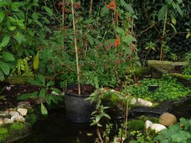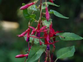 Das funktioniert perfekt. Die Erneuerung von Zweigen und Blättern fällt in die Periode Dezember bis Mai und das geht daher nur im Gewächshaus. Es ist dann aber oft zu kalt oder zu nass, oder wiederum zu heiss wegen der Frühlingssonne. Diese Fuchsie bleibt darum ein wenig ein Sorgenkind. F. jimenezii hat dunkelgrüne, gegenständige und ovale Blätter und kleine rosarote bis rote Blüten, die in kleinen Rispen an kurzen Stielen sitzen. Wegen diesen kleinen Rispen gleicht diese Art auch ein wenig einer Mini-Arborescens. Diese Tatsache zeigt sich auch in einem alten Namen Fuchsia arborescens sensu, was bedeutet «Fuchsia arborescens gleichend». Jimenez war der erste, der sie als eine eigene Art einstufte. Die F. jimenezii, die bei uns im Umlauf ist, ist im Ganzen gesehen etwas dunkler und hat etwas weniger ausgeprägte Rispen, als die ursprünglich beschriebene. Wahrscheinlich ist sie von anderer Herkunft. Alles in allem keine einfach zu haltende Pflanze, aber der Mühe wert, wenn man sie zum Blühen bringt.