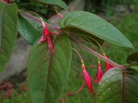 In alphabetischer Reihenfolge beginnen wir mit F. alpestris. Diese Art wurde 1843 durch George Gardner beschrieben, wobei der Name auf das alpine Vorkommen in den hohen Bergen im Südosten von Brasilien verweist. Sie wächst kräftig und etwas wild. Die lianenartigen Zweige tragen grosse Blätter mit einem roten Anflug. Die Blüte ist jedoch nicht spektakulär. In einem Topf mit schwach gedüngter Erde wächst diese Art etwas "zivilisierter" und auch die Blüte fällt etwas reichhaltiger aus. Im Garten kommt sie nach dem Winter nur zaghaft wieder in Schwung und bei mir, in sandiger Erde, bleibt sie auch bescheiden, was die Wuchshöhe betrifft.